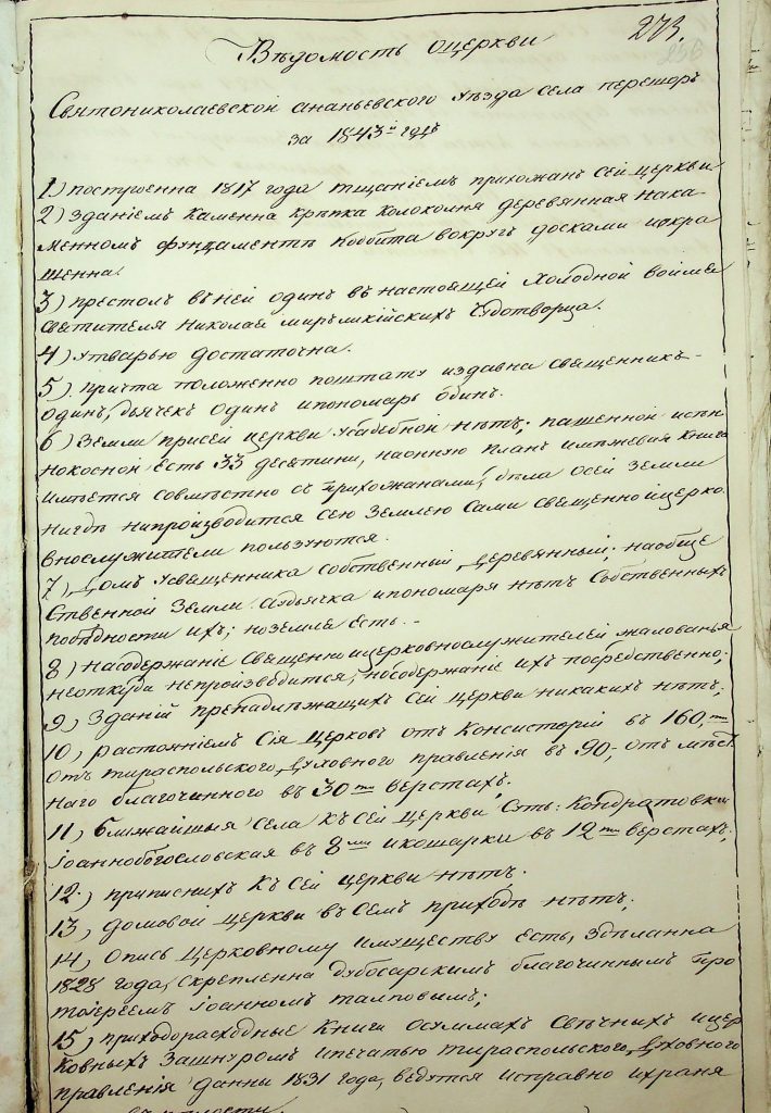 Державний архів Одеської області підготував підбірку документів, присвячених історії Свято-Миколаївського храму в селі Перешори Подільського району – пам’ятці культури ХІХ століття.