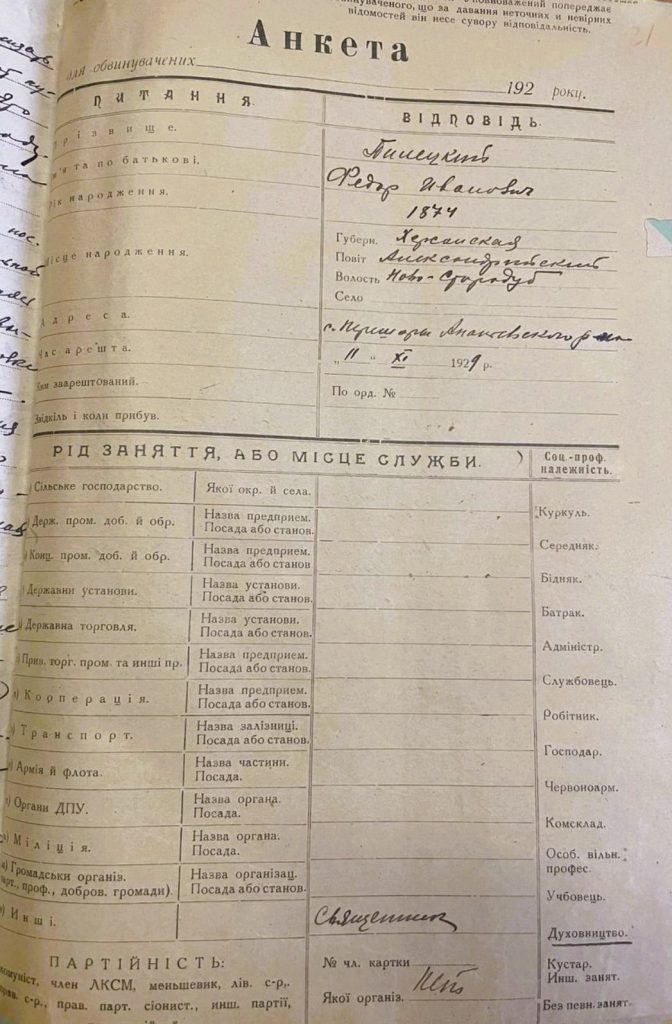 У 1930-х роках священнослужителі Свято-Миколаївського храму зазнали політичних репресій у рамках репресивної політики 1930-х років, спрямованої проти релігійних діячів та представників української громади. У цей період священника Федора Пилецького, псаломщика Феофана Бондаренка та церковного старосту Трохима Мартинюка було засуджено до вищої міри покарання за сфабрикованими звинуваченнями. Архівно-слідча справа з матеріалами розслідування зберігається у фондах Державного архіву Одеської області. У 1989 році обвинувачених було реабілітовано посмертно відповідно до указів про відновлення справедливості щодо жертв репресій 1930-1950-х років.