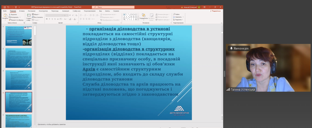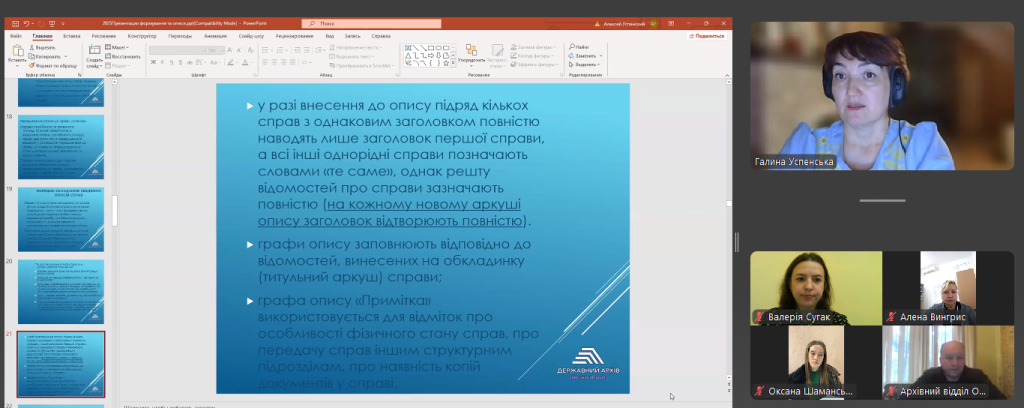 З доповіддю виступила Галина Успенська – начальник відділу формування Національного архівного фонду та діловодства.